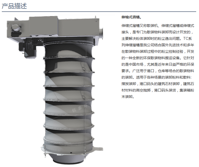 服務(wù)電話:13091153069(同微信)汽車裝料伸縮溜筒的特點